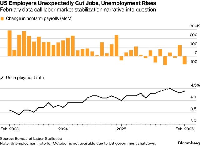 The economy lost 92,000 jobs in what was the worst month for the labor market since the pandemic. Granted, cold weather and some 28,000 healthcare workers on strike negatively impacted the number, but the economy still lost jobs on a net basis. The unemployment rate edged up from 4.3% to 4.4%, while wage growth inched higher to 3.8%. The prior two months were revised lower by 69,000. This kind of stagnation, resulting predominantly from immigration policies and AI-related job losses, can’t continue indefinitely if we are going to maintain trend economic growth of 2%.